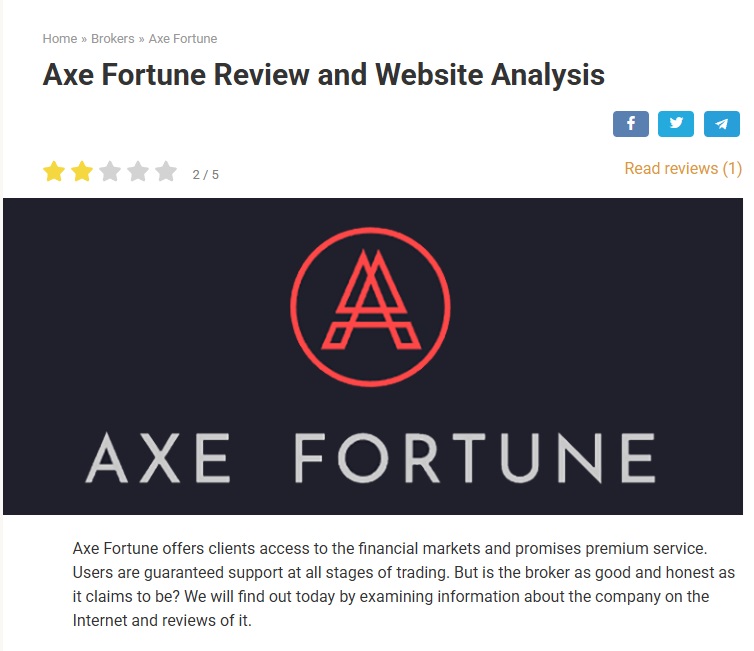 There is very little about AXE-FORTUNE to begin with, not to mention their site is rather difficult to find on a web search. What wasn’t hard to find however, were the Trustpilot reviews.